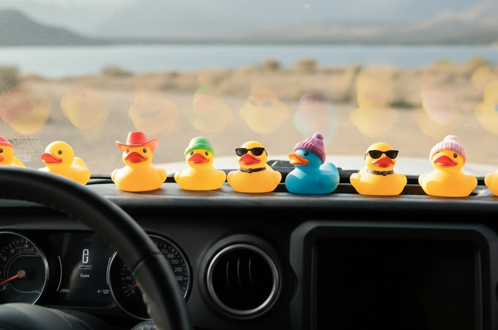 The recipient discovers the duck, usually with genuine surprise and a smile. Many photograph their duck and share it on social media with the #DuckDuckJeep hashtag, continuing the chain of positivity. Over time, frequent Jeep drivers accumulate collections that line their dashboards in what the community calls “duck ponds.”